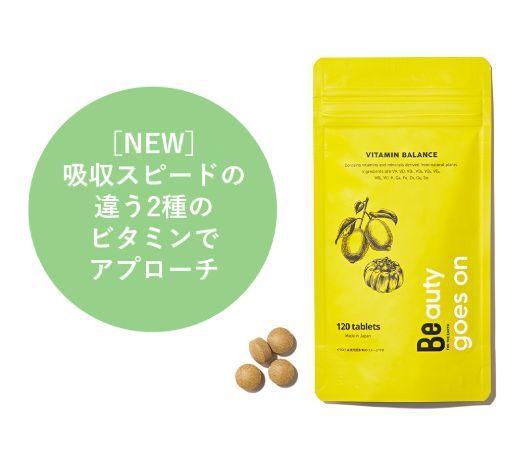 たんぱく質などの働きをスムーズにするビタミンと、体の機能を助けるミネラル。現代人に不足しがちな2つの成分を、天然素材から水で抽出。バランス良く配合し、健やかさをサポートするナチュラルなサプリメントです。1日4粒で、サラダボウル約1杯分のビタミン&ミネラルの摂取が可能。吸収スピードの速い従来型と、長く留まるリポソーム型の2種の配合で、排出されやすいビタミンCが体内にゆっくり留まります。